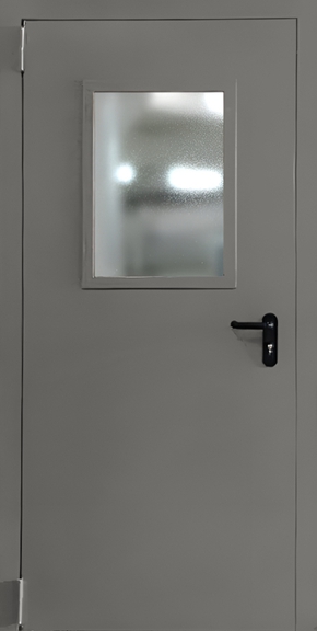 Однопольная противопожарная дверь с порошковым напылением и стеклом (серая)
