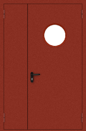 Полуторапольная противопожарная дверь с круглым стеклом (порошок / красная)